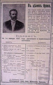 ищу подругу жизни для совместного труда и счастливой жизни. Мне 48 лет. Имею деток, состояние В ПОЛМИЛЛИОНА. Особу девицу не старше 30 лет, вдову до 35 лет, бездетную, со средствами. Веду обширныя экономическия и торговыя дела. Желательно подругу интеллигентную, окончившую Средн. учебное заведение, знающую музыку, некурящую. Переписка серьезная. Адр.: г. Александровск, Екатеринославской губ., И. А. Куржупову. В собственныя руки.
