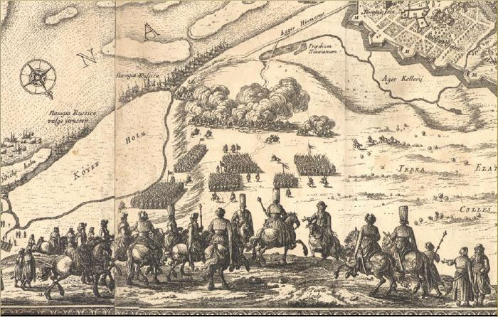 «Из Олонца пишут. Города Олонца, поп Иван Окулов собрав охотников пеших с тысячу человек, ходил за рубеж в свейскую [королевство Свейское — Швеция] границу, и разбил свейские Ругозерскую, и Гиппонскую, и Сумерскую, и Керисурскую заставы. А на тех заставах шведов побил многое число, и взял рейтарское знамя, барабаны и шпаг, фузей [винтовок] и лошадей довольно, а что взял запасов и пожитков он поп, и тем удовольствовал салдат своих; а достальные пожитки и хлебные запасы, коих не мог забрать, все пожог: И соловскую мызу сжег, и околь соловской многие мызы и деревни, дворов с тысячу пожег же. А на вышеописанных заставах, по скаске языков, которых взял, конницы шведской убито 50 человек, пехоты 400 человек; ушло их конницы 50, пехоты 100 человек. А из попова войска только ранено салдат два человека».