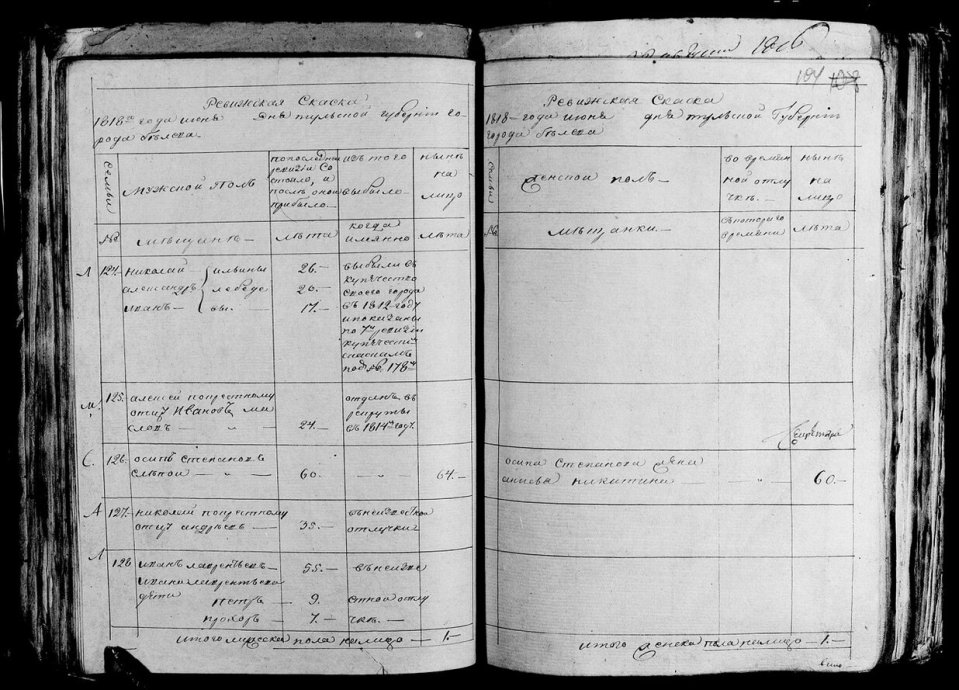 Тогда я решил проверить предыдущую по времени ревизскую сказку за 1818 год по городу Белеву — мне было интересно, будет ли и там Алексей Маслов? Я уже предполагал разные родственные связи — а что, если отец Алексея, Сергей Маслов, являлся братом Бориса Маслова? Перепись 1818 года могла подтвердить это!